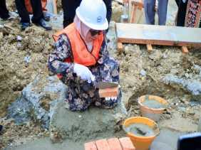 Wabup Kampar Dr. Misharti Letakkan Batu Pertama Pembangunan MI Miftahul Ulum Yayasan Ninik Mamak Kenegerian Lipat Kain
