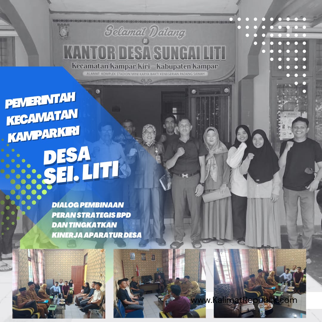 KAMPAR KIRI, RIAU | KalimatRepublik – Dalam upaya memperkuat tata kelola pemerintahan desa dan meningkatkan kualitas pelayanan publik, Pemerintah Kecamatan Kampar Kiri melakukan kunjungan kerja dan pembinaan ke Desa Sungai Liti. Kegiatan ini dipimpin langsung oleh Pelaksana Tugas (Plt.) Camat Kampar Kiri, Sri Nuryani, S.ST, didampingi oleh para Kepala Seksi serta staf lingkup Kantor Camat Kampar Kiri.